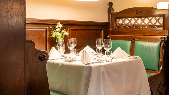 Ein besonderer Ort, der Geschichte und Tradition vereint - unsere Kutscherstube. Das rustikale Ambiente erinnert an vergangene Zeiten. Hier können Sie sich bei einem deftigen Essen und einem kühlen Bier zurücklehnen und dem Alltag entfliehen. Die Kutscherstube eignet sich perfekt für Feiern im kleinen Kreis oder für gemütliche Abende mit Freunden.